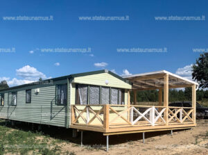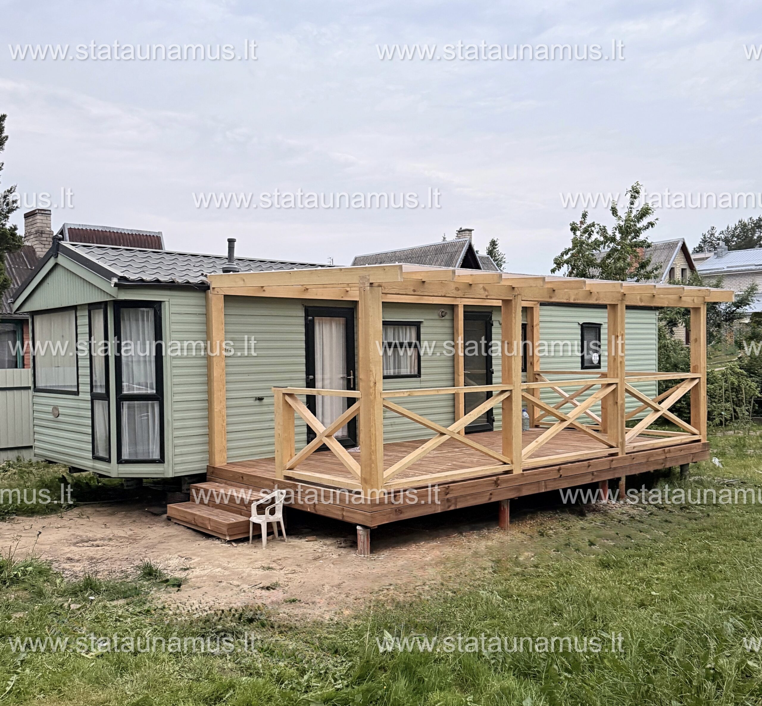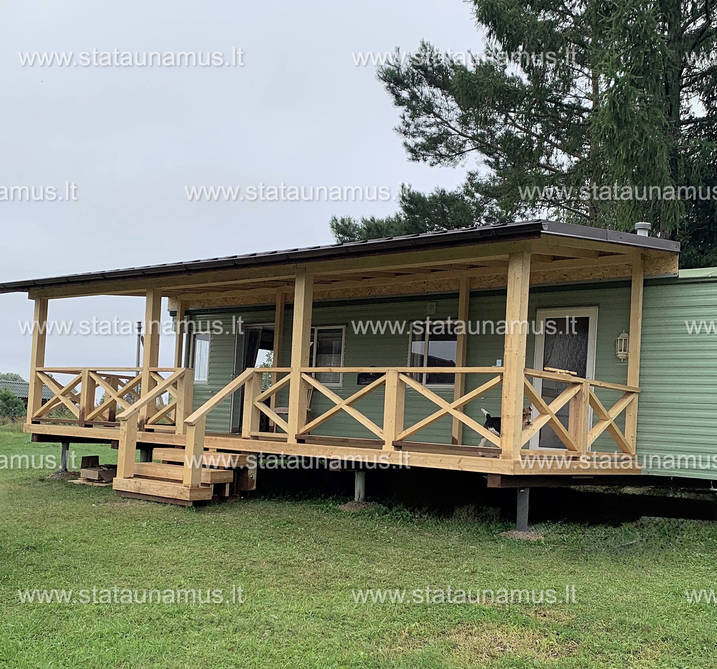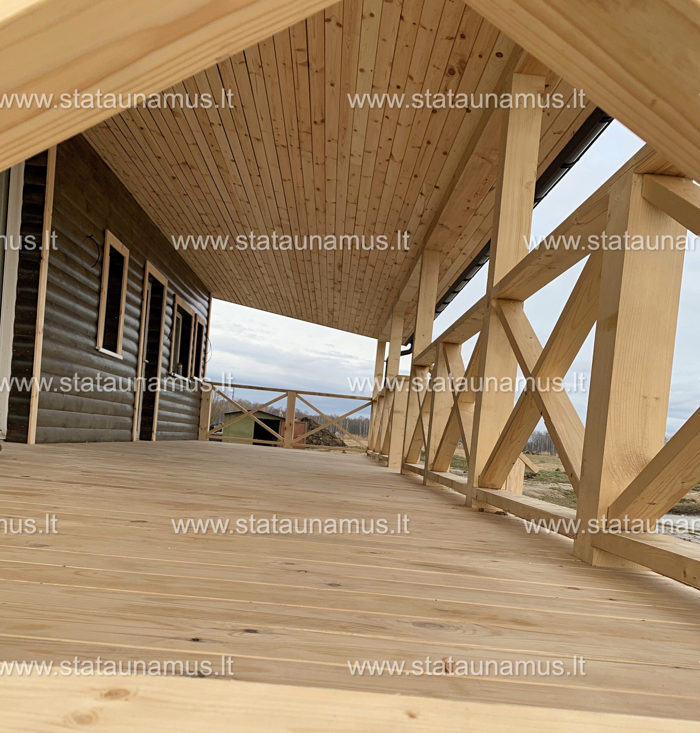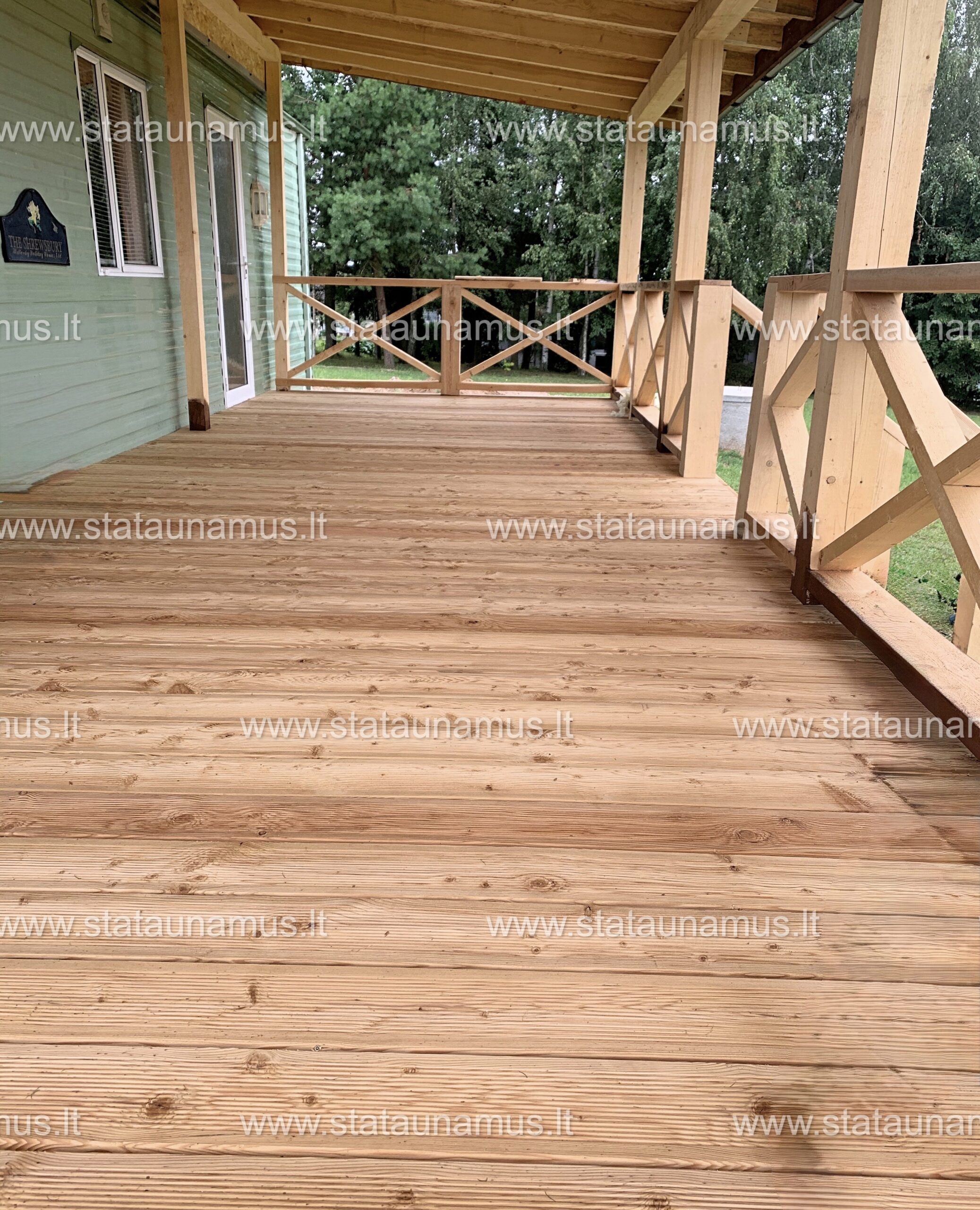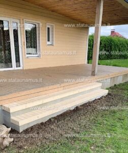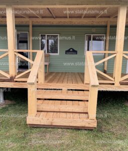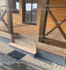 Pagal poreikį, įrengiame laiptelius į terasą, turėklus, stogelį.