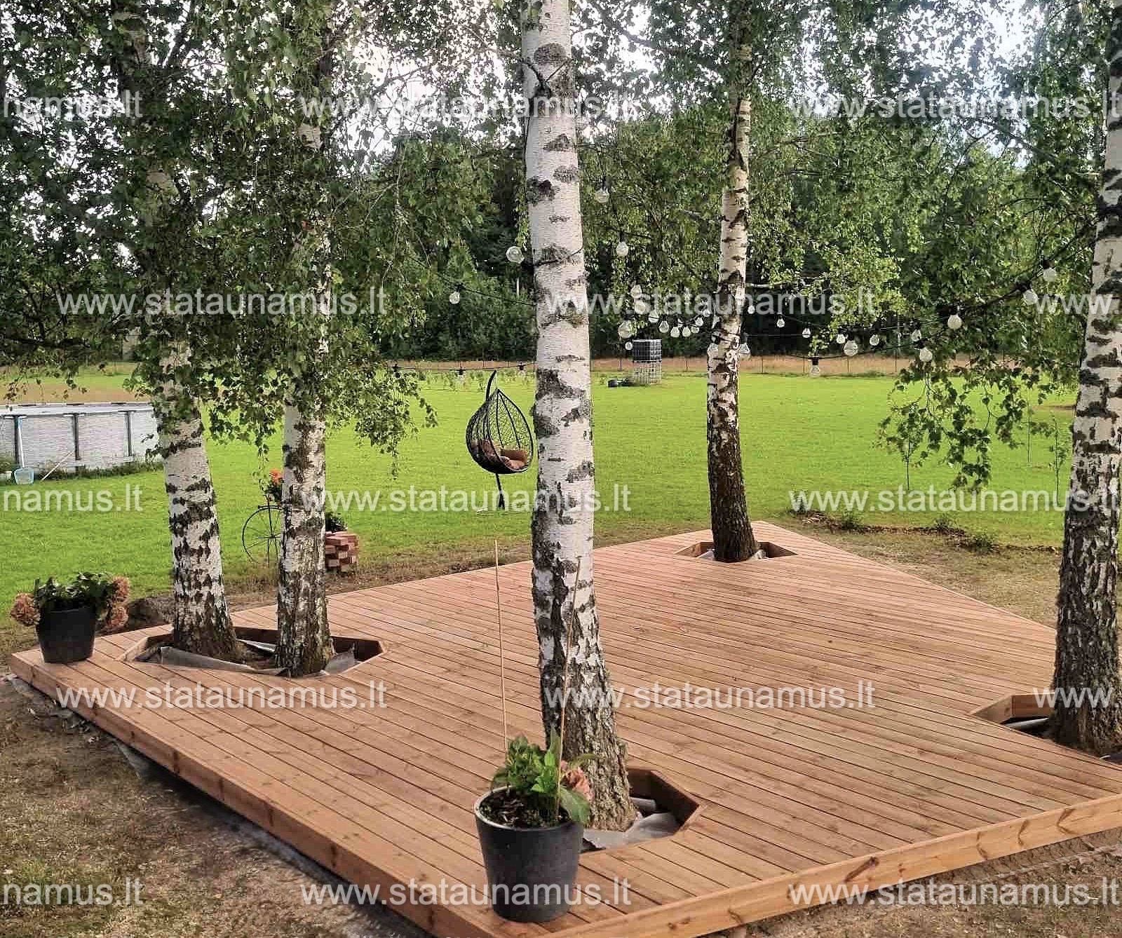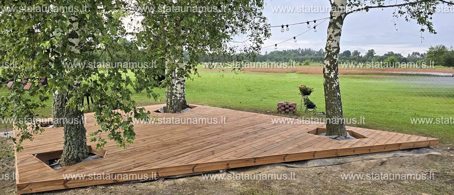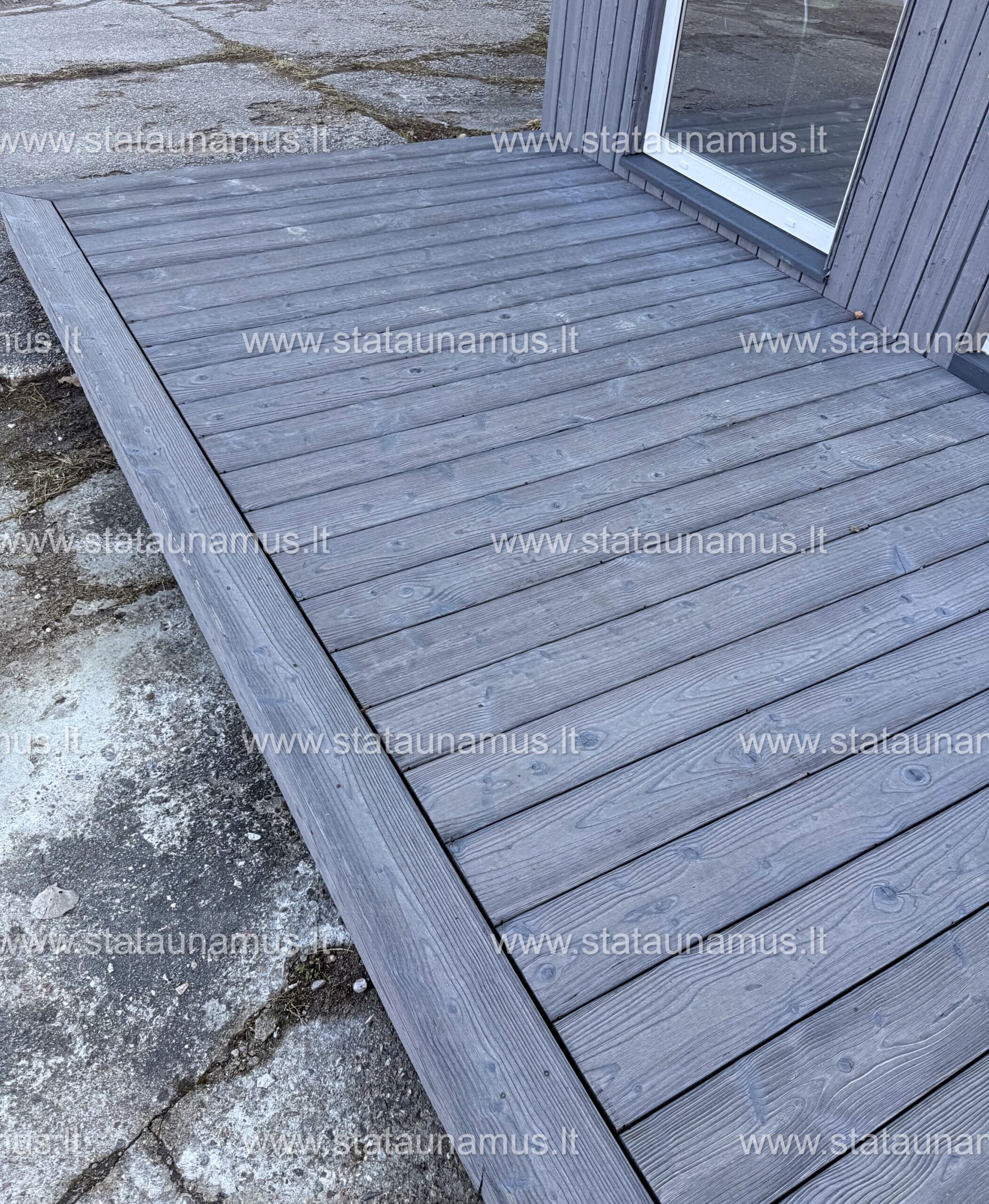 Galime padaryti terasą pagal jūsų pageidavimus tiek prie pastato, tiek ir atskirai nuo pastato jūsų pasirinktoje vietoje.